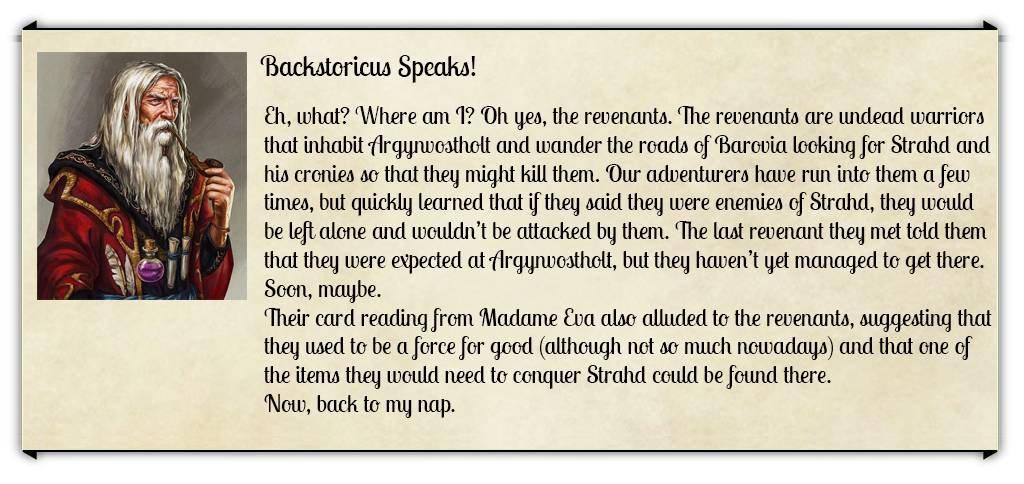 “Didn’t you tell them that you were an enemy of Strahd?” Devlin enquires. “They probably wouldn’t have come after you, then.”