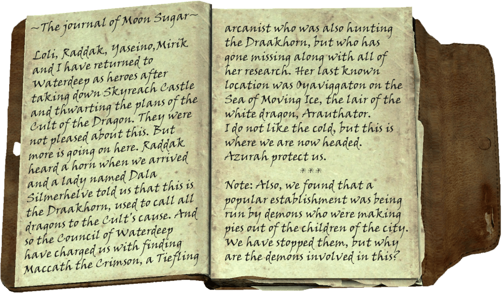 They pass another night safely on the ice, and another day of sailing after that, with the Captain telling them that they should make landfall on the iceberg by mid-afternoon. Floating planks and bits of debris begin to appear in the sea, bobbing on top of the waves, but as Moon reaches over to see if she can grab a couple of pieces for repairs, she loses her footing and tumbles overboard. Her friends throw her a rope but can’t pull her in, so Raddak magically manipulates the water around the Tabaxi to rise and deposit her back onto the ship. Larustah pats him on the shoulder and congratulates him, while Moon sheepishly goes to fetch a blanket, feeling exhausted.